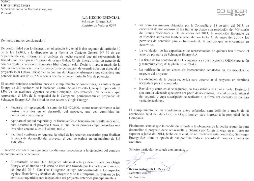 Santiago—Mar 28--La chilena Schwager Energy, dedicada al negocio