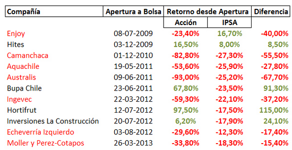 Seguramente vieron el siguiente cuadro, que no ha sido muy auspicioso, para las anteriores aperturas de bolsa en Chile.