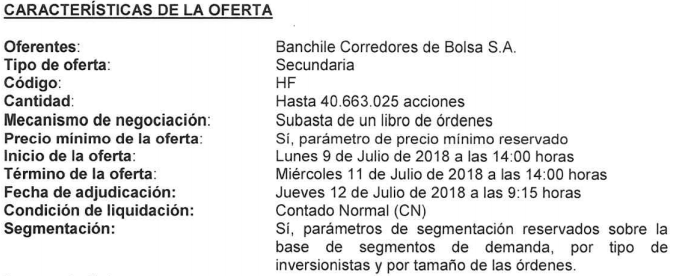Las órdenes de inversionistas institucionales nacionales e inversionistas extranjeros serán recibidas exclusivamente por Banchile Corredores de Bolsa S.A.