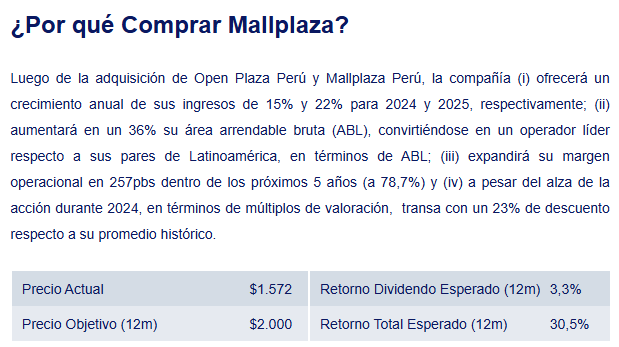 Recomendación de Compra MALLPLAZA, Precio Objetivo a 12 meses de $2.000.-pesos, por BANCHILE/CITI. Descarga informe completo de CITI: pinchando acá. Adjunto: Adjunto: