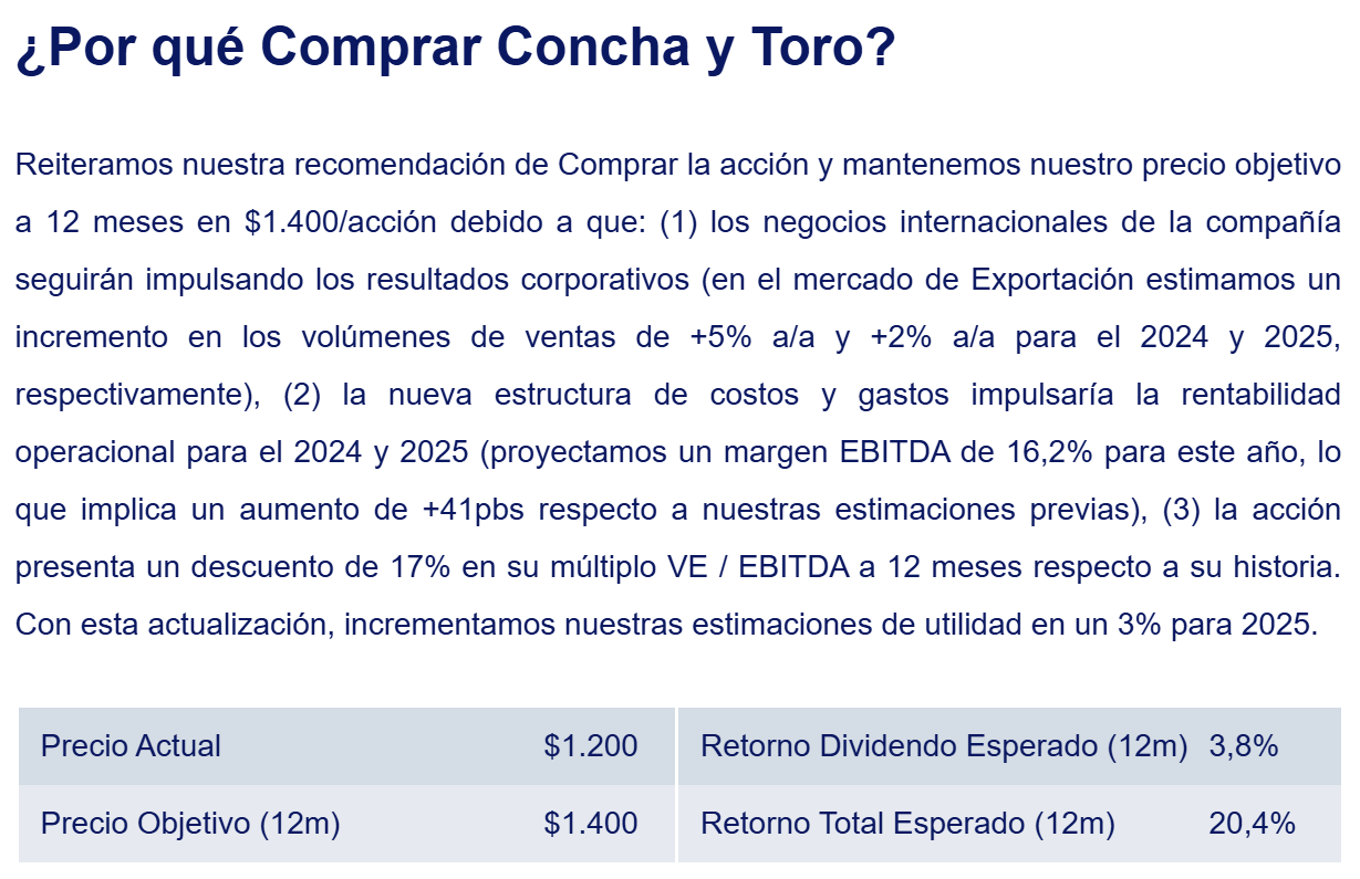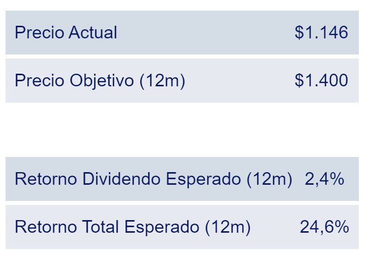 Mezclando con algo de fundamental, a la compañía le conviene un dólar alto frente al peso chileno que es de carácter exportador. Por ende de mantenerse los niveles del dólar actual como lo hecho hasta ahora, niveles de 1.300 - 1.297 pesos en el papel es una excelente zona de compra.