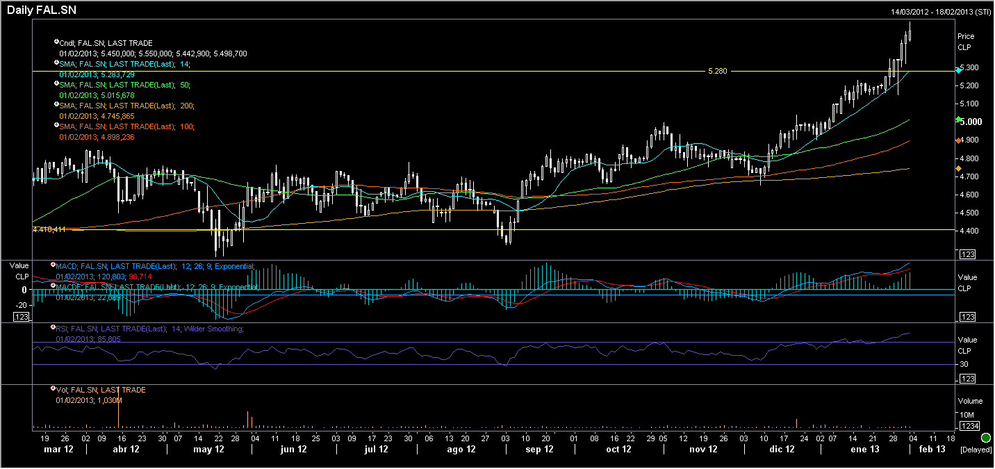 Dado lo alto de la acción, lo único que podríamos esperar de la acción es una toma de utilidades a niveles de $5.280.-pesos para entrar nuevamente.