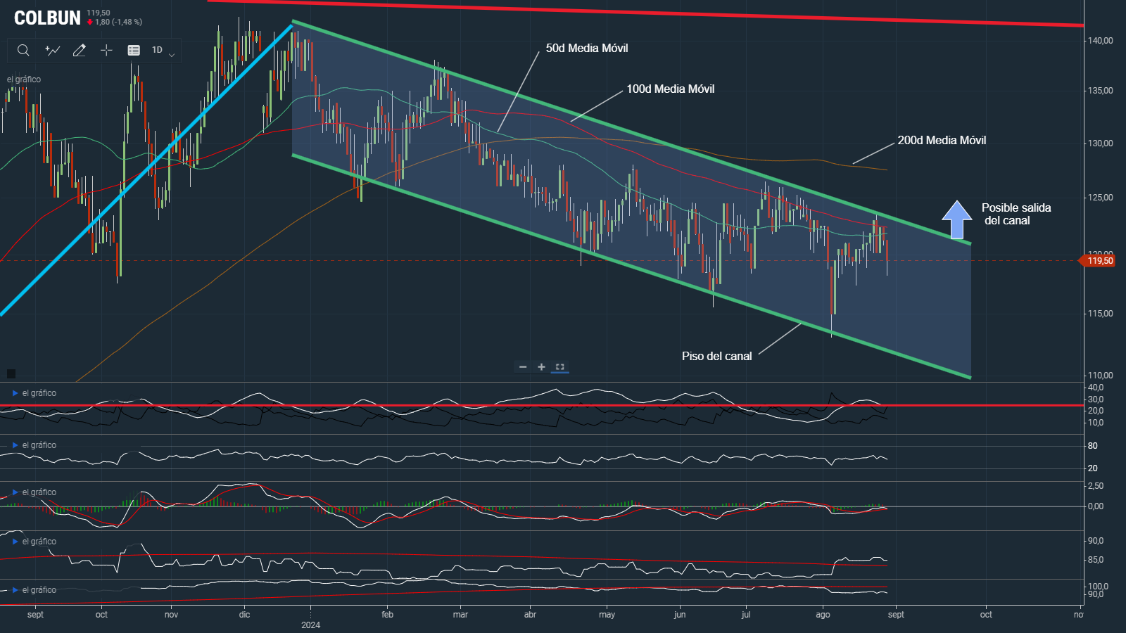 ANALISIS TÉCNICO ACCIÓN DE COLBUN AL 29 AGOSTO 2024.Si bien Banchile acaba de darle una recomendación de COMPRAR a COLBUN con un precio objetivo de $142.-pesos, vamos a analizar qué es lo que dice el Análisis Técnico sobre la acción.