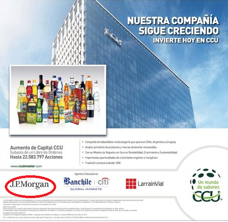 Llamar la atención la noticia publicada hoy en Emol acerca de la recomendación que sacó hoy J.P. Morgan si lo juntamos con la publicidad publicada hoy también en el diario El Mercurio.