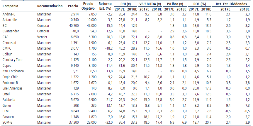 Precios objetivos al 17 Nov 2017 por Banchile.