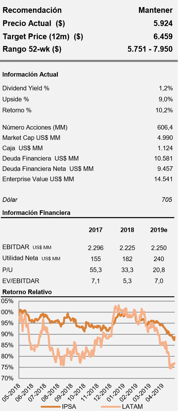 Recomendación Mantener LATAM por MBI Inv. P.O: $6.459.-pesos