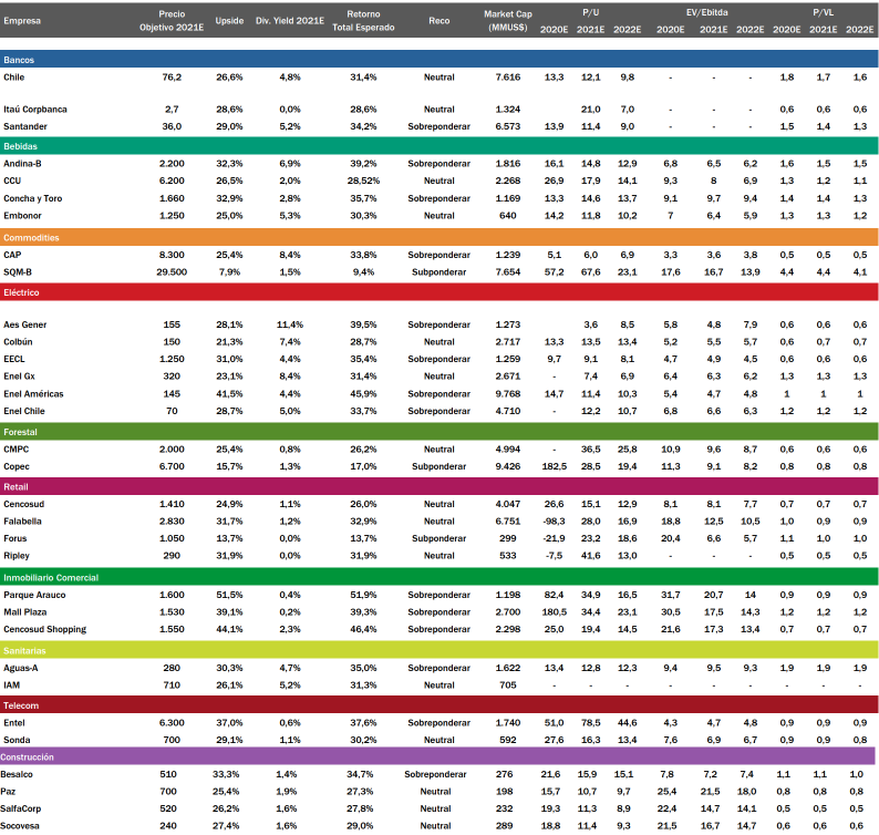 Este año, nuevamente, el Departamento de Estudios de BCI Corredor de Bolsa nos sorprende con su completísimo Booklet de Recomendaciones Acciones Chilenas pensando en el año que se nos viene 2021. En esta edición se contempla el análisis de 32 compañías IPSA y Small Caps.