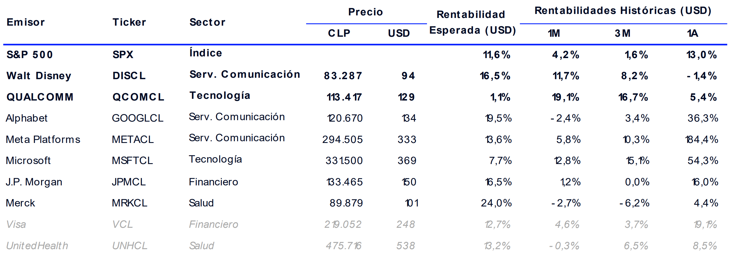 Recomendación de Acciones Internacionales por Banchile Inversiones al 17 de Noviembre 2023.