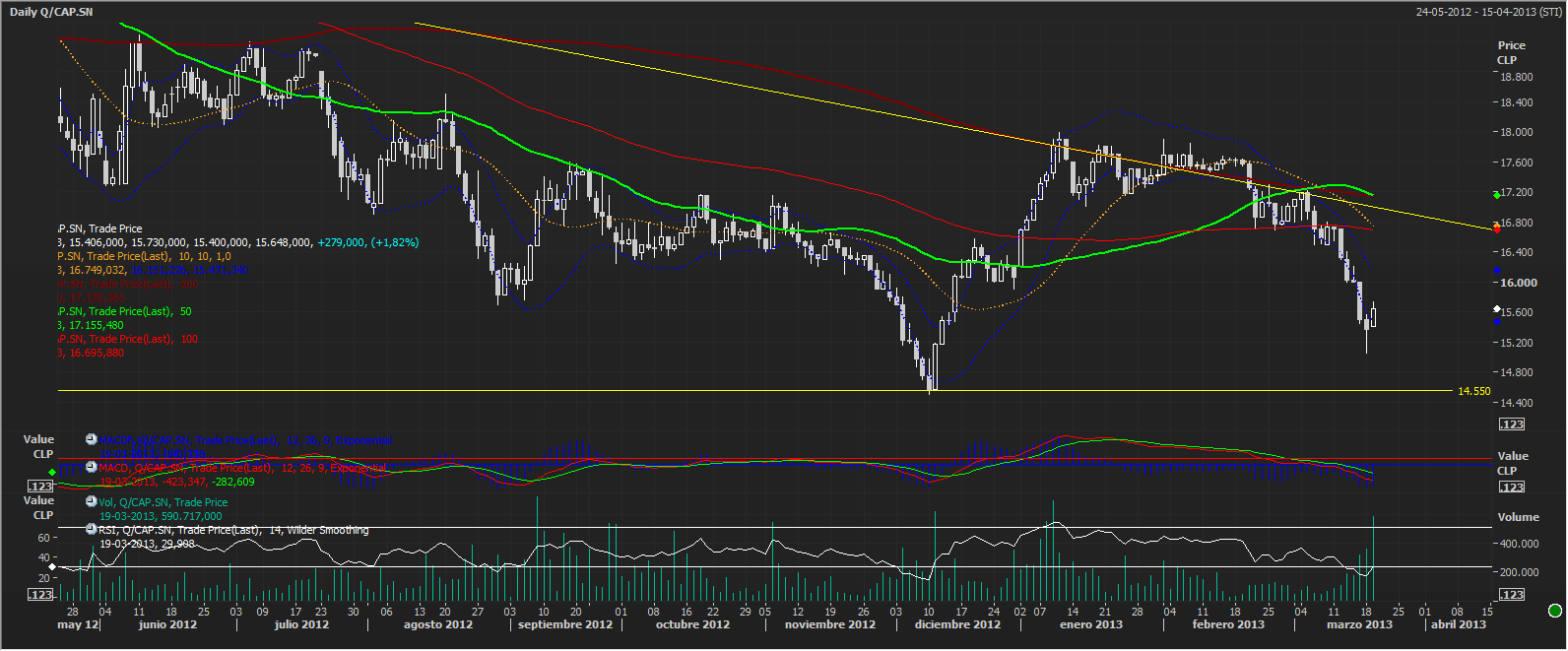 Desde hace unos pocos días atrás la acción ha sido capaz de romper al alza la media móvil de 50 días, lo cual nos indica que podríamos estar ad portas de comenzar una tendencia de corto plazo al alza.