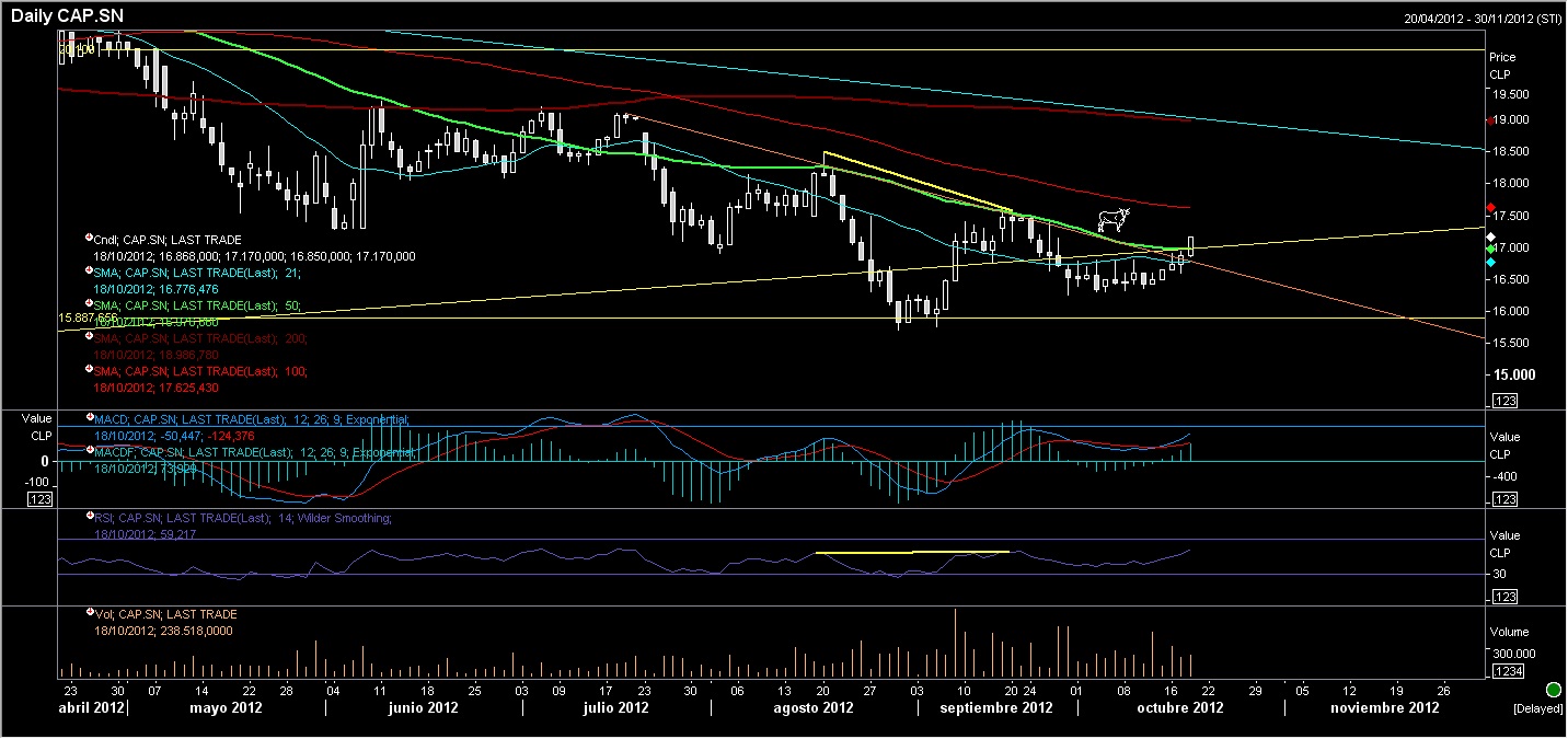 Hace unos días CAP reportó utilidades, lo que para algunos analistas fueron mejores a los esperados, aunque con pérdida en su última línea. El objetivo de este análisis es brindar una mirada a lo que está haciendo el precio de la acción independiente a las últimas noticias fundamentales, o al menos asumiendo que en el precio se refleja toda la información disponible actualmente en el mercado.