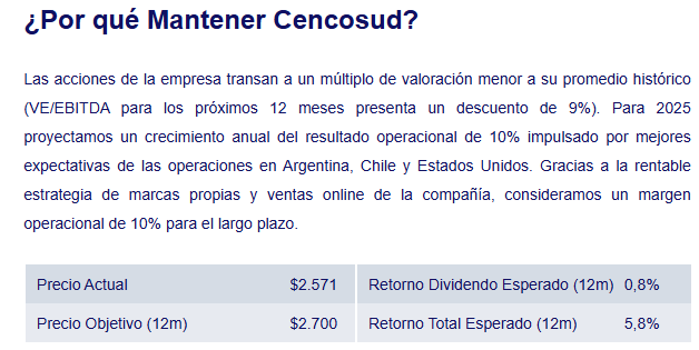 Recomendación de Compra CENCOSUD, Precio Objetivo a 12 meses de $2.700.-pesos, por BANCHILE/CITI.